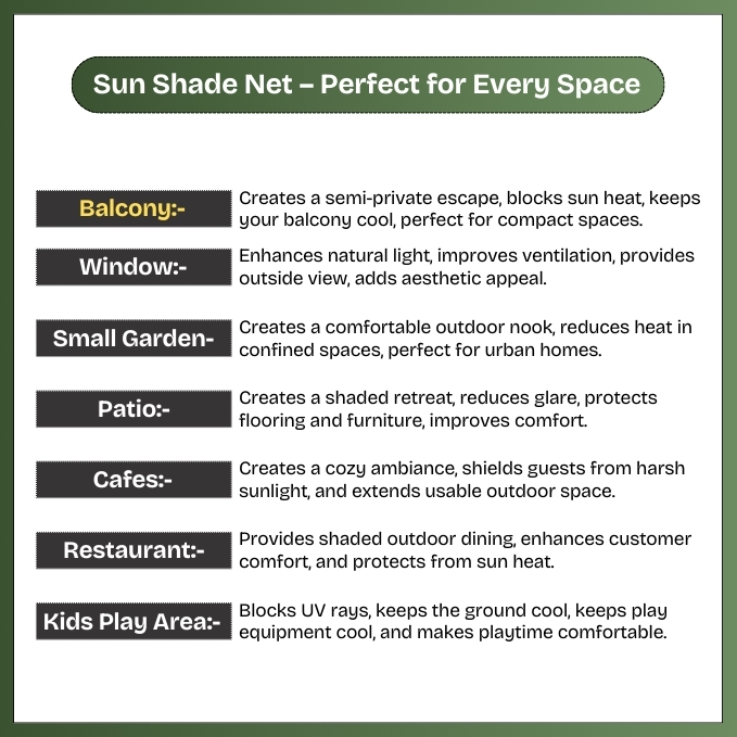 Made with high-quality, durable materials, TRINQET shade nets are engineered to withstand Indian summers while offering superior ventilation and shade. Whether you're sipping your morning tea or hosting a cozy evening with friends, this shade net ensures comfort, privacy, and protection all year round.